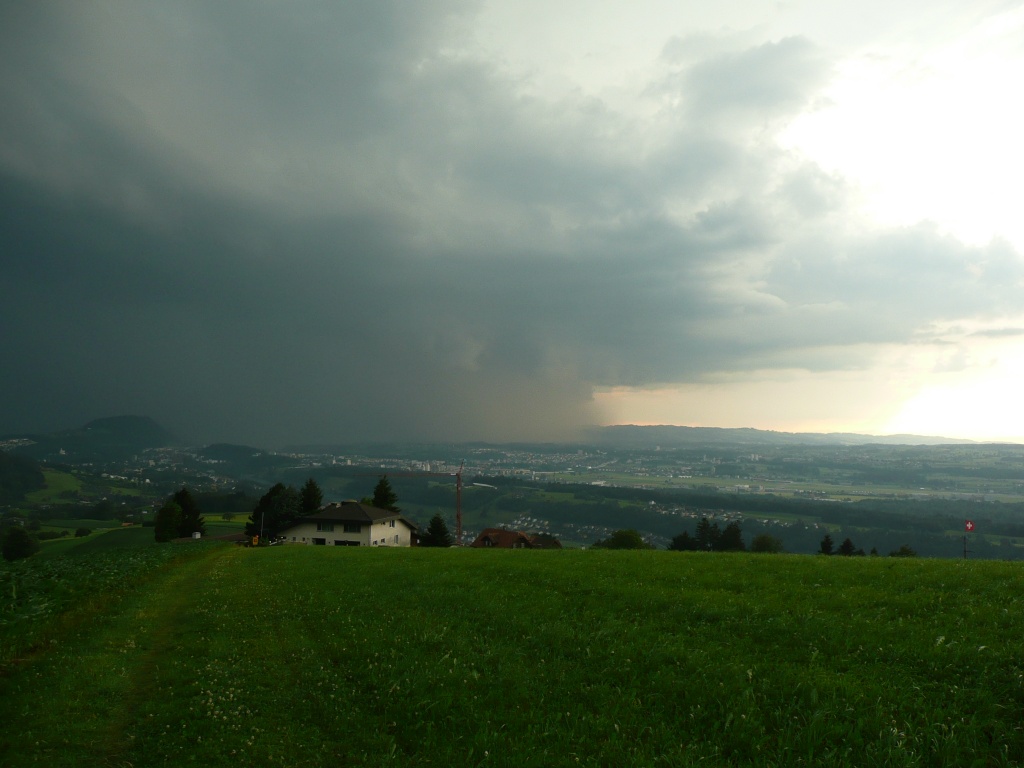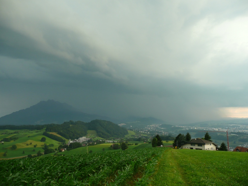 Ich habe die heftige Luzerner Gewitterzelle von einer Anhöhe in Adligenswil beobachtet, das war ein zünftiges Ding! (!) An meinem Standort gab es lediglich stärkeren Regen und viel Wind. Der heftigste Niederschlag (inkl. Hagel >2cm.) zog vom hinteren Pilatusgebiet auf, erreichte Schwarzenberg und Malters, Littau, Rothenburg, Rain und Eschenbach. Eine Bekannte meldete mir aus Rothenburg Hagel in Kirschengrösse, der zwischen Rain und Rothenburg allerdings noch grösser gewesen sei.