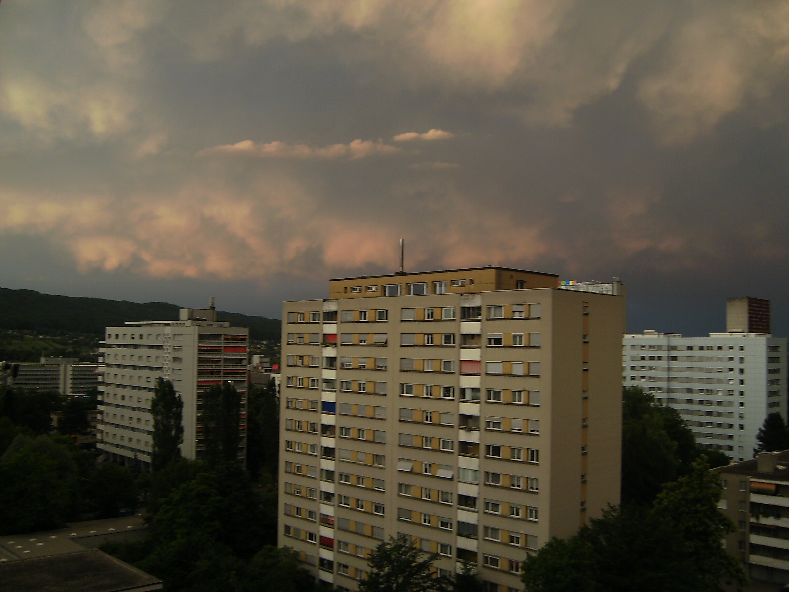 Aber auch die folgende Wolkenfarbe/konstelation sieht nun echt toll aus (von Zürich her kommend richtung Baden)