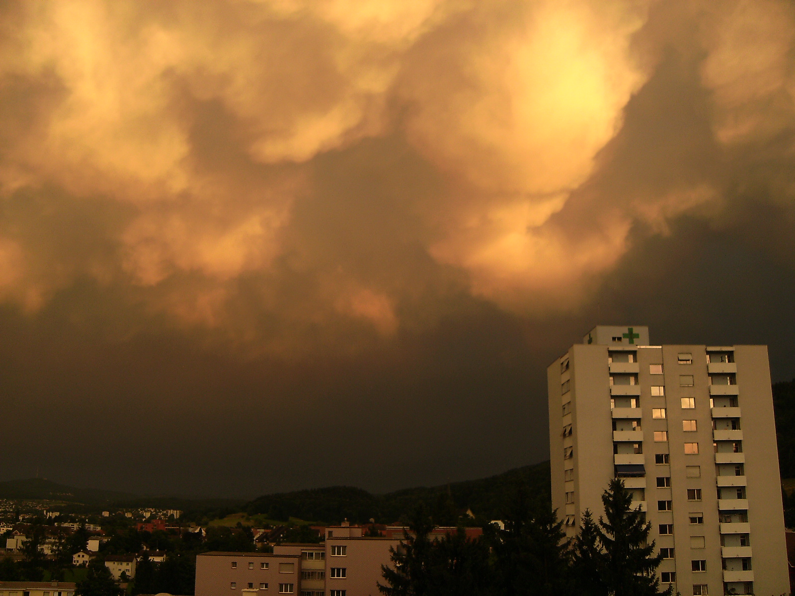 Bei mir in Spreitenbach ist alles Dunkel, nur in der Mitte die paar Wolken ganz gelbe (siehe vorigen Post, ca. 3tes Bild).