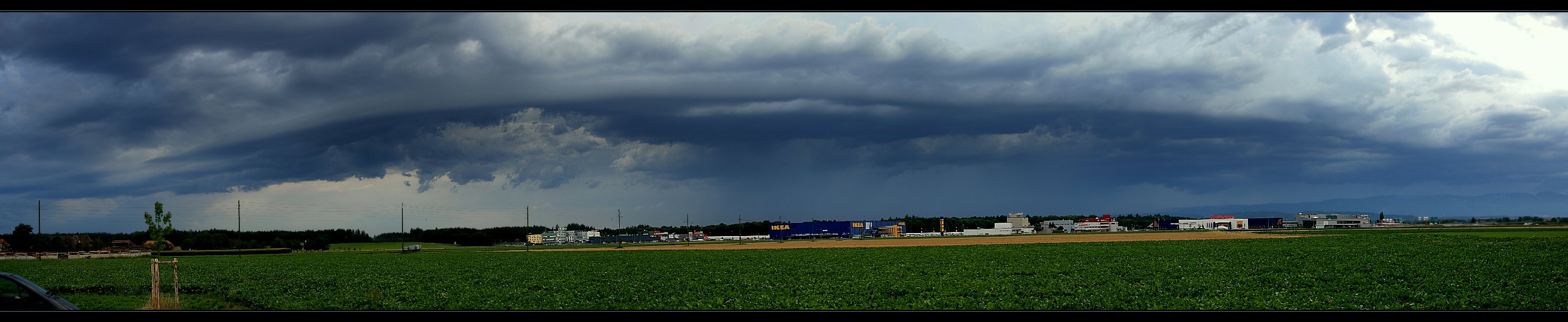 Die Hauptzelle hat mich zwar verfehlt, aber trotzdem gab es einige kräftige Regengüsse mit mässigen Windböen zwischen 40-50km/h. Die Blitzrate war eher gering. Dafür hat man wieder Hagelraketen in den Himmel geschossen, als wäre heute der 1. August