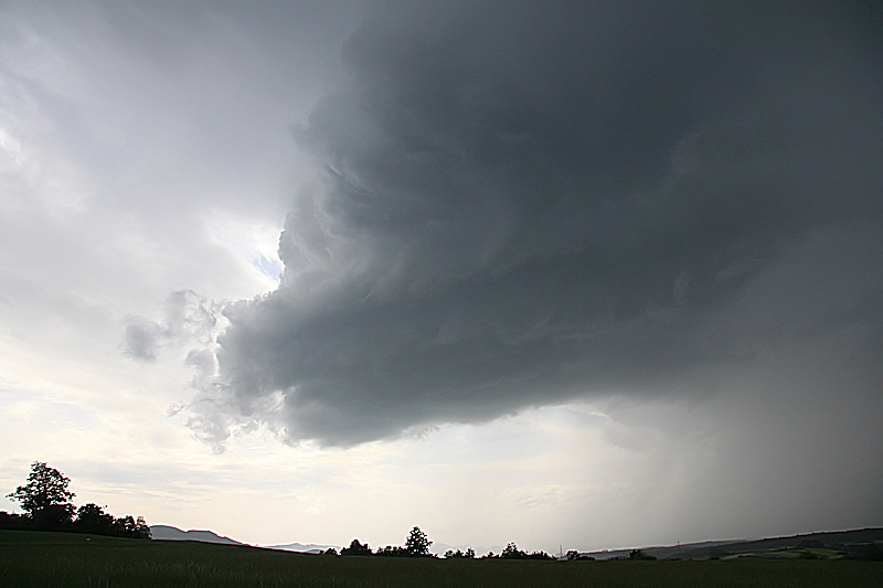 Dei "kleine" Zelle welche heute Nachmittag südlich an Basel vorbeigezogen ist, hatte meine Aufmerksamkeit. Ich hatte genügend Zeit, nachdem ich auf dem Radar die Zelle gesehen hatte, nach Anwil (BL) zu fahren.