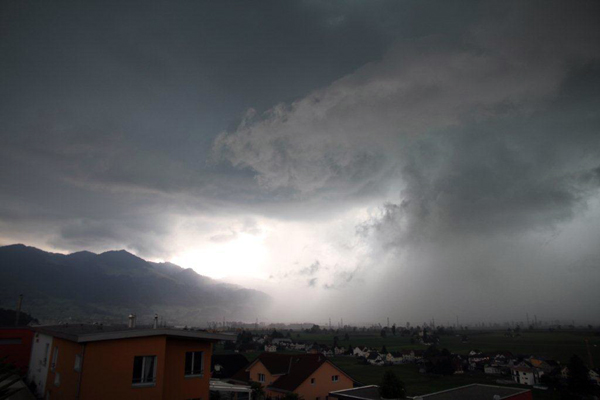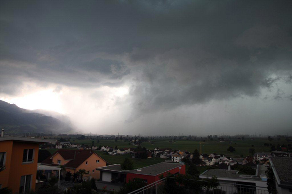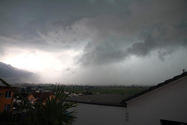 Sie entstanden vor dem Haus um ca. 17:42 Uhr. Er erzählte mir, dass gut 5 Minuten später alles überflutet war und der Regen ein Fenster unter einem Vordach bis auf eine Höhe von 1.50 Meter nass gemacht hat. Das Vordach ist knapp vier Meter lang vom Fenster aus gesehen.