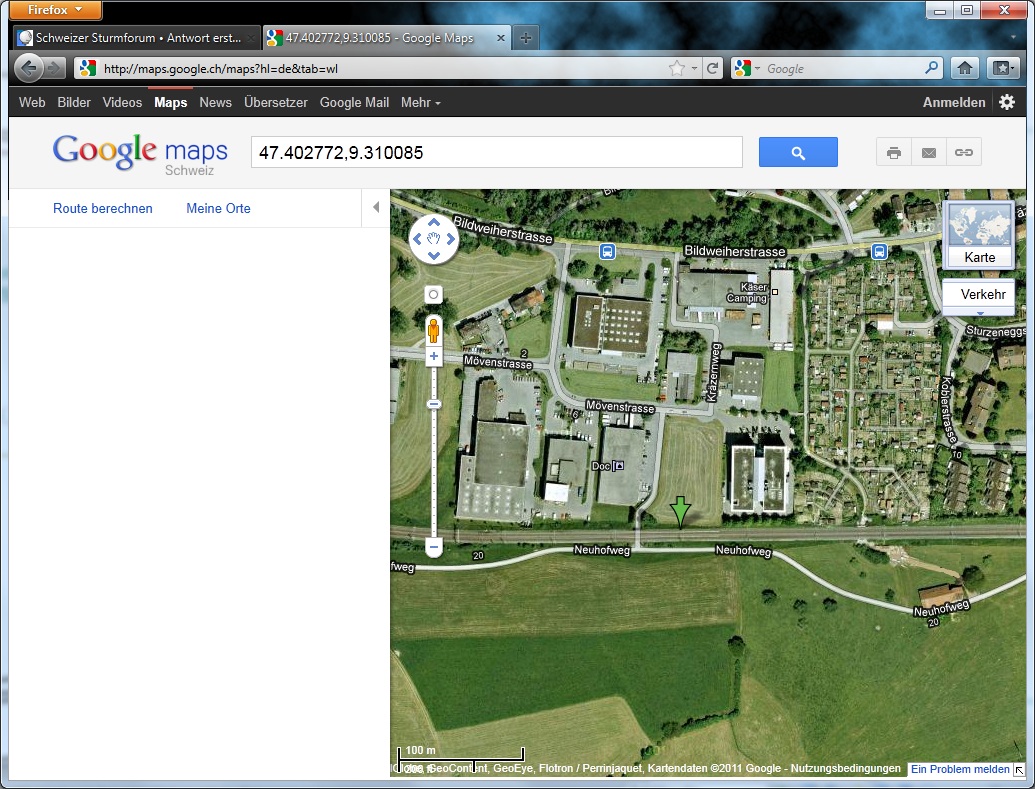 Vielen Dank für die Daten. Bist Du sicher, dass dieser östlich (nicht westlich? > siehe Loop) von Winterthur zu lokalisieren wäre?