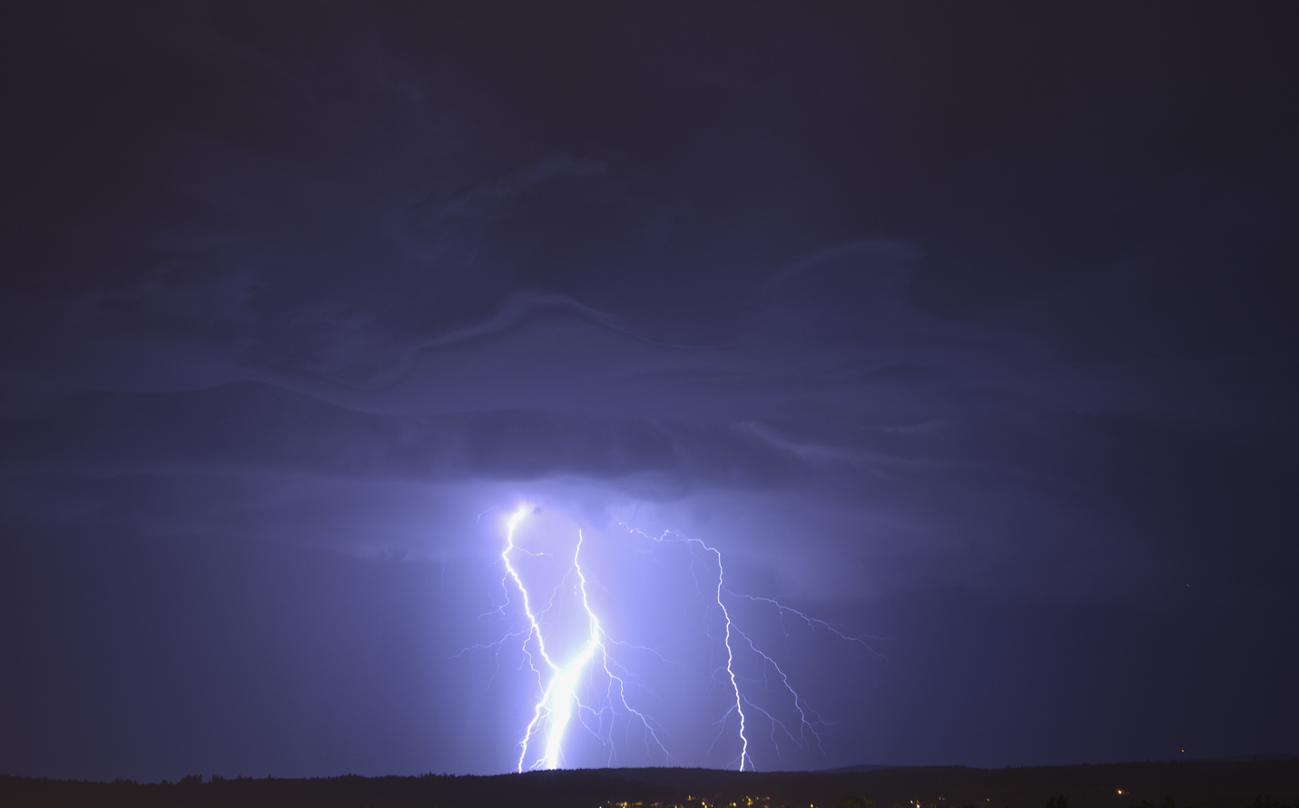 Bin grad zurück von einem Popcorn chasing. Fing an wo ich die einzelne Grenzgänger Zelle auf dem radar verfolgte (die südlich des nicht Puddingbums-sondern-Pruntruter Zipfel sich doch noch gebildet hatte) Die schlurfelte unbeeindruckt,mal hier und da blitzend wie ne alte Dampflok den Hochrein entlang Richtung Schaffhausen. Dacht: die seh ich mir an und fuhr auf Spotterplatz Markelfingen. Dort wars nun doch schon recht Blitzaktiv , aber zu weit westlich, also bin ich zum Spotterplatz Homberg bei Stahringen gedüst. Zu spät, denn nun fings hinter mir auf dem Bodanrück an zu blitzen, also zurück und in Richtung Wallhausen, wo ich eigentlich gleich hätte hin sollen, mittlerwile hatte sich ja eine ganze Linie ausgebildet. In Wallhausen konnt ich die abziehenden Zellen bewundern in der ferne. Super, hab blitztechnisch nix vor die Linse bekommen, und nur ein Nahblitz aus 20m entfernung gesehen. Der war rot und hat nun ein Foto von mir.