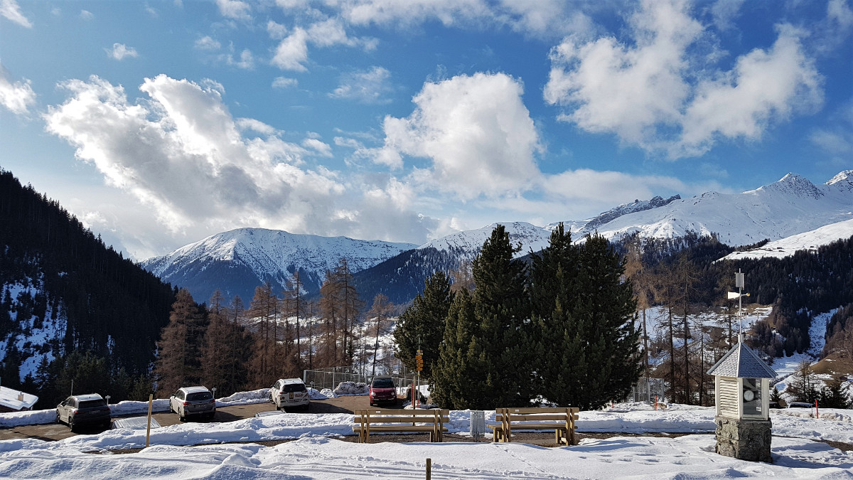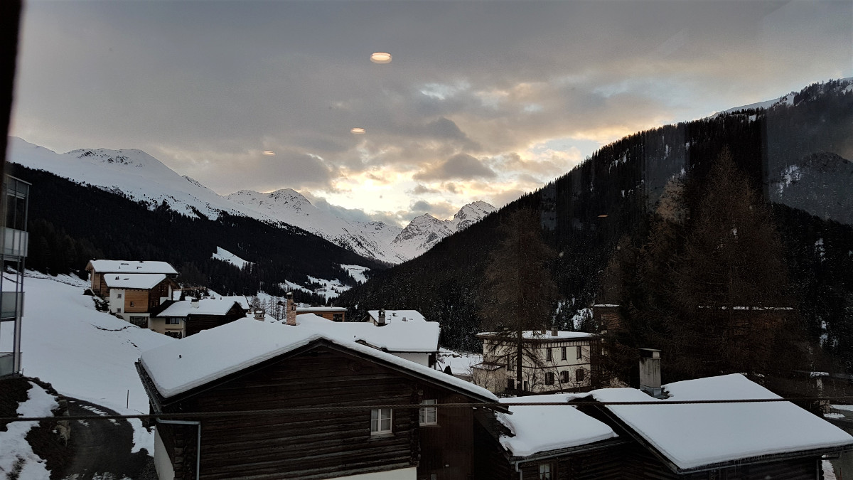 In Davos angekommen, richtiges "Schoggipapierli"-Wetter