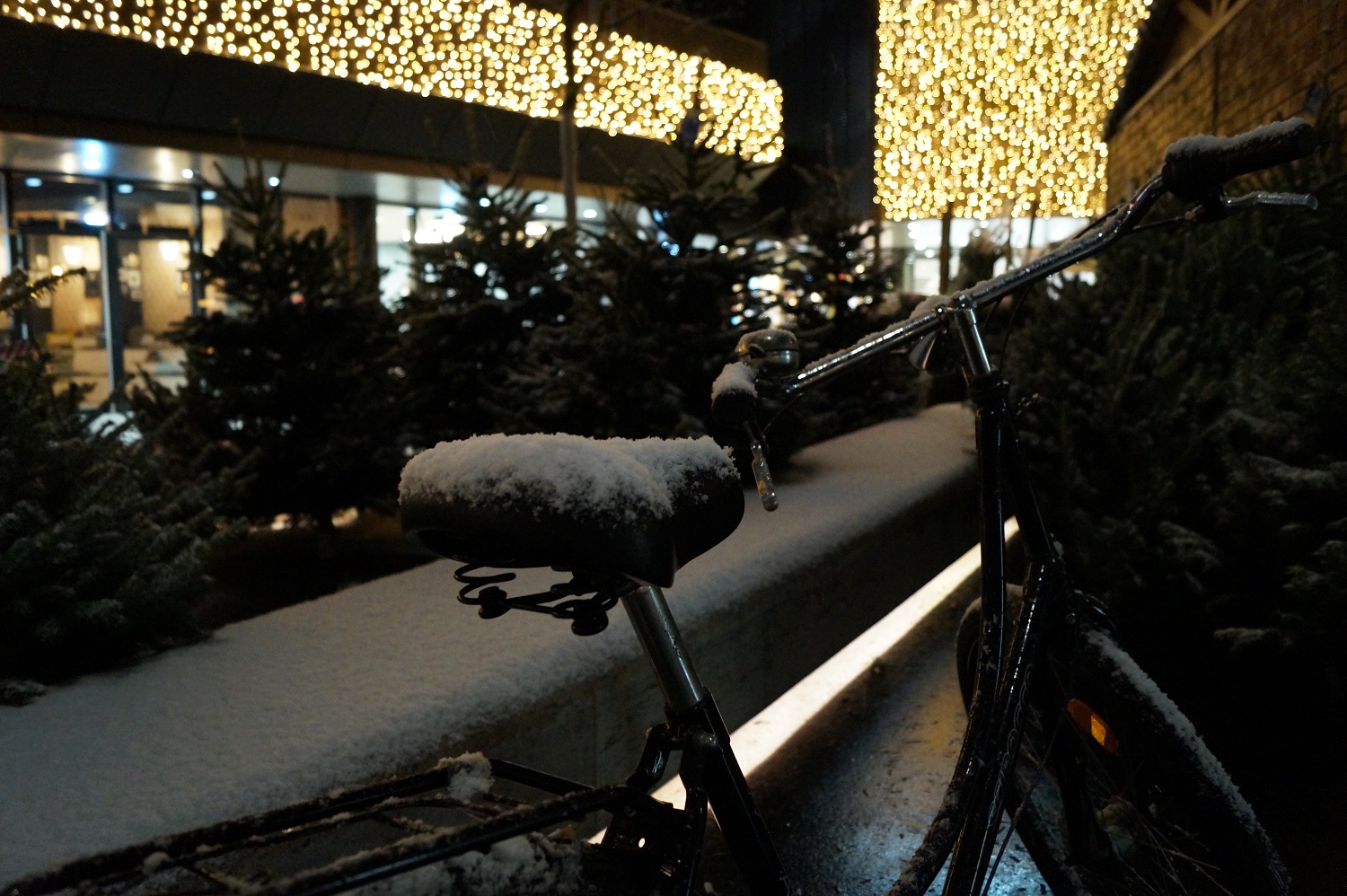 Nun wurde ich vor dem Wecker wach und musste mal die Lage abchecken gehen. Und yeah, tatsächlich Schneefall und angezuckerte Dächer: