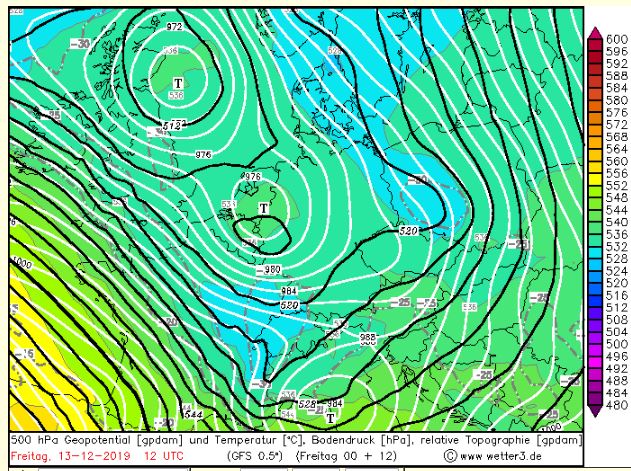 GFS 00z-Lauf für heute 12z (500 hPa):