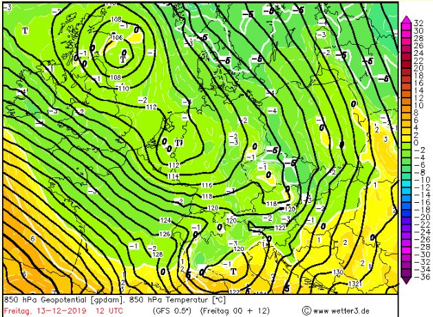 GFS 00z-Lauf für heute 12z (850 hPa-Temp):