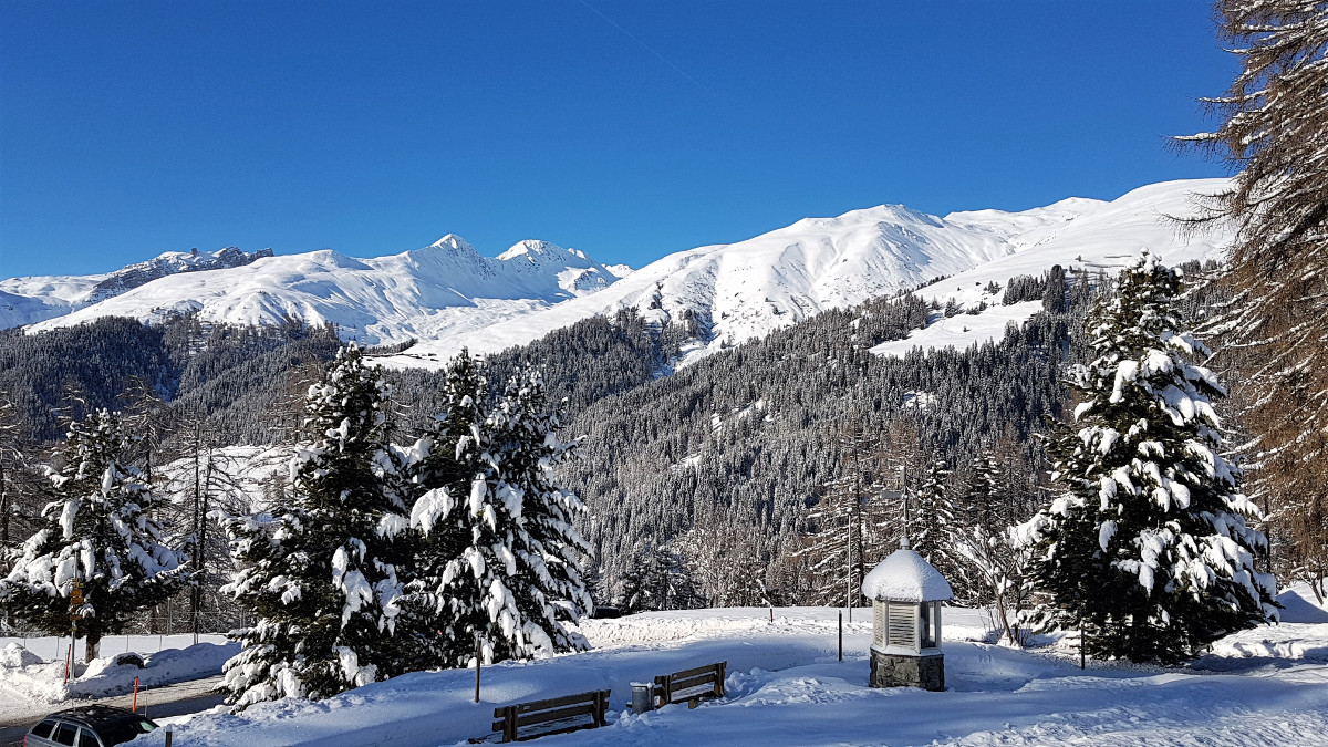 Heute Morgen dann präsentierte sich die Davoser Landschaft von ihrer schönsten Seite: wie in einer Märchenlandschaft lag überall feinster Pulverschnee und die Sonne lachte vom stahlblauen Himmel herunter. Was für eine Pracht!