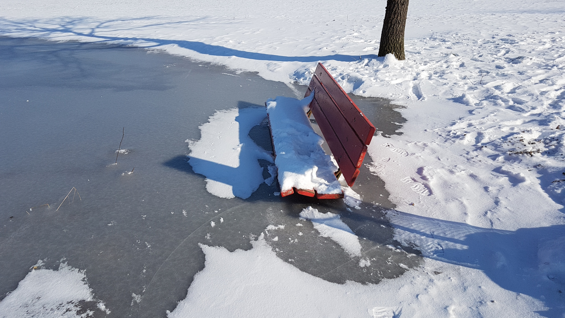 Ist zwar kein See, sondern nur ein "Tümpel".... aber eine Referenz zum raschen Tauwetter in der warmen Frühlingssonne. Wo durch Baumbestand die Sonne weniger lang einheizen kann, bleiben noch dünne Eisflächen......mit schönen Strukturen...