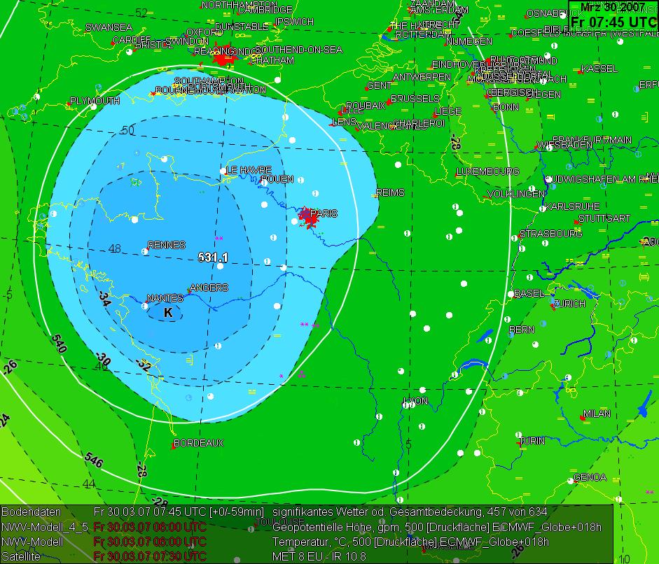 Kein Wunder: Höhentief mit -36°C auf 500 hPa bei Nantes: