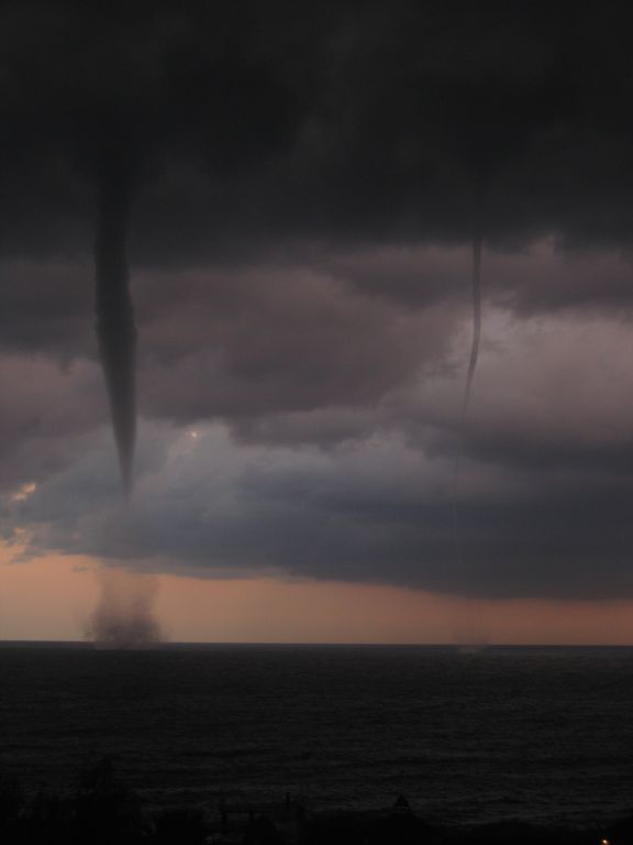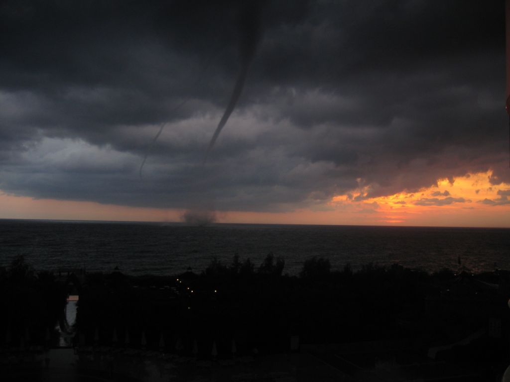 "Diese Tornado-Fotos haben wir in unseren Ferien am 16.10.06 in der Türkei, Karaburun Delphin deluxe Hotel, nähe Alanya gemacht – eine Windhose ging direkt über das Hotel, es war wirklich erschreckend! (Geschirr und Möbel flogen auf der Terrasse in die Luft und fielen auf einen Haufen zusammen)"