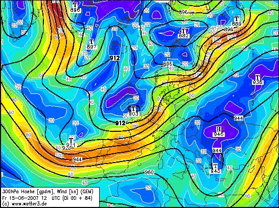 Zudem überquert ein Jet (Windfeld 200/300hpa) im Verlaufe des Freitags die Schweiz.