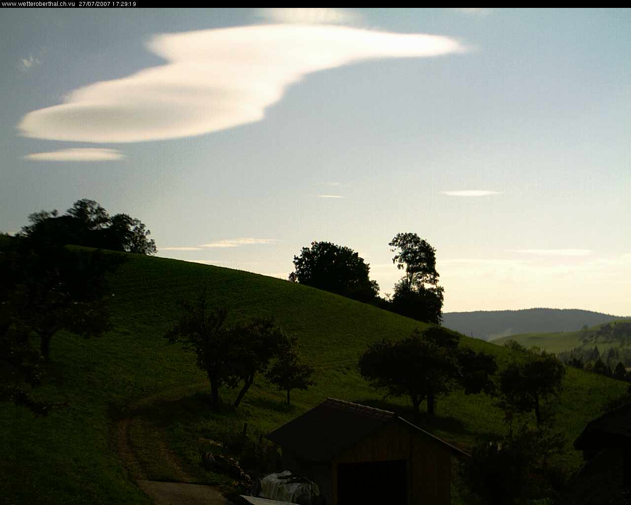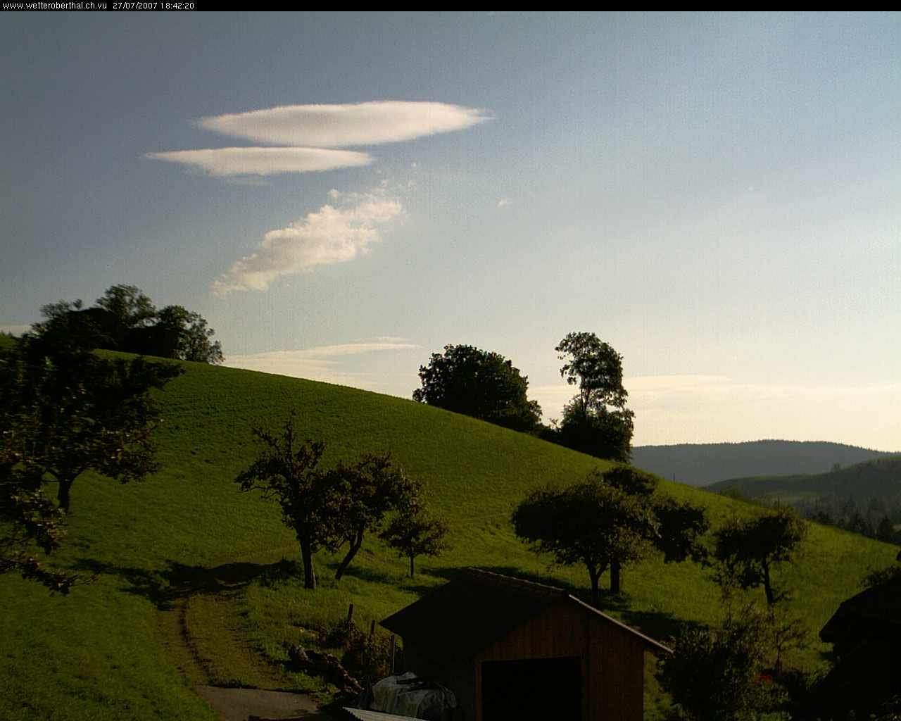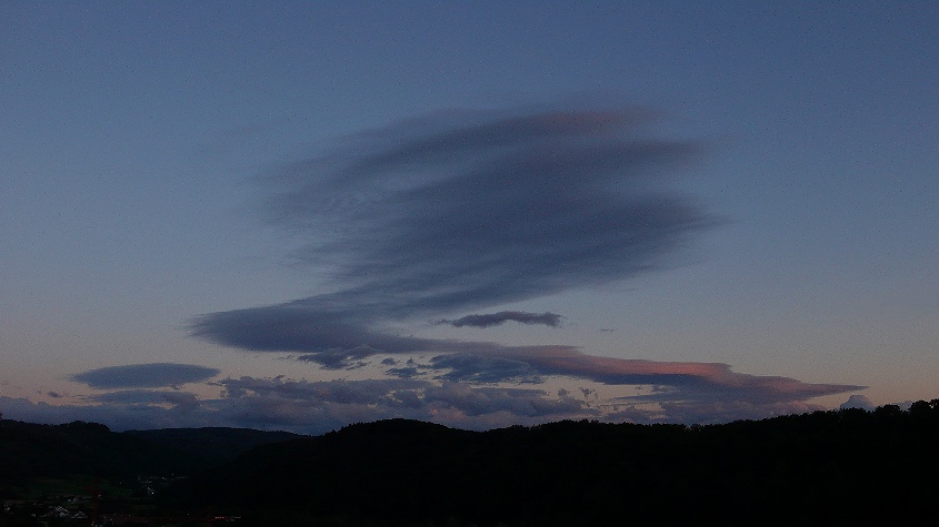 Durch das Gelände generierte, oft ortsfest bleibende Wolken in starker Strömung sind immer wieder faszinierend zum beobachten. Ein Lehrstück für numerische Modellierer und solche, die es werden wollen. Eigentlich ein Grund, um diesen Wolken einen eigenen Thread zu widmen. Heute Abend war der Blick gegen die Alpen zu besonders hübsch. Anbei ein Zeitraffer von Raebi, und eine Foto dazu.