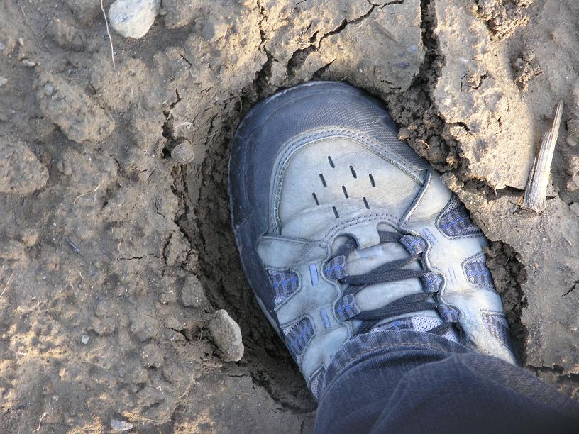 Überall wo ich mit roter Farbe die Felder eingekreist habe, liegt Wasser. In den Feldern sinkt man tief ein, so dass die Bauern im Moment nicht ihre Traktoren einsetzten können: