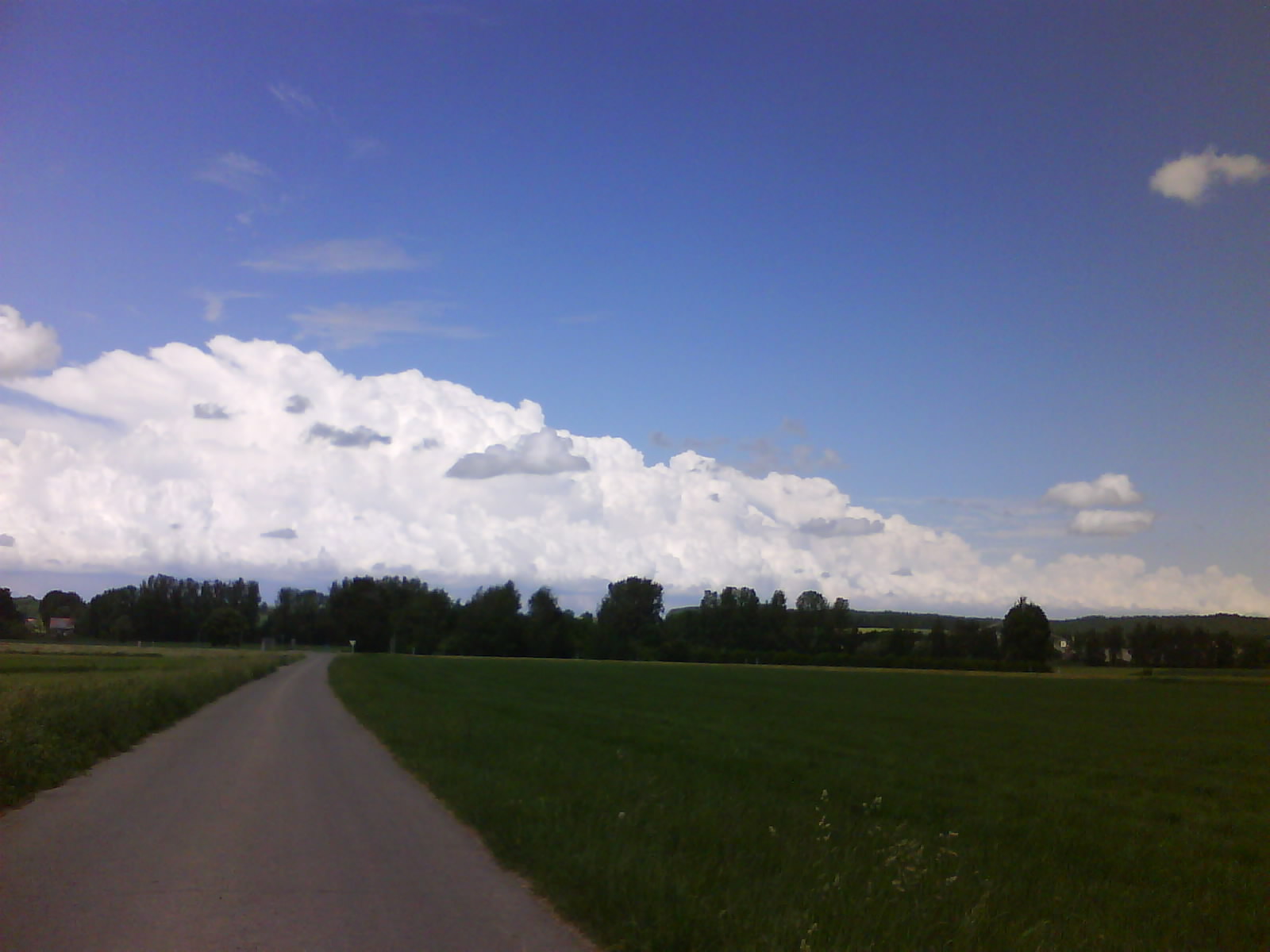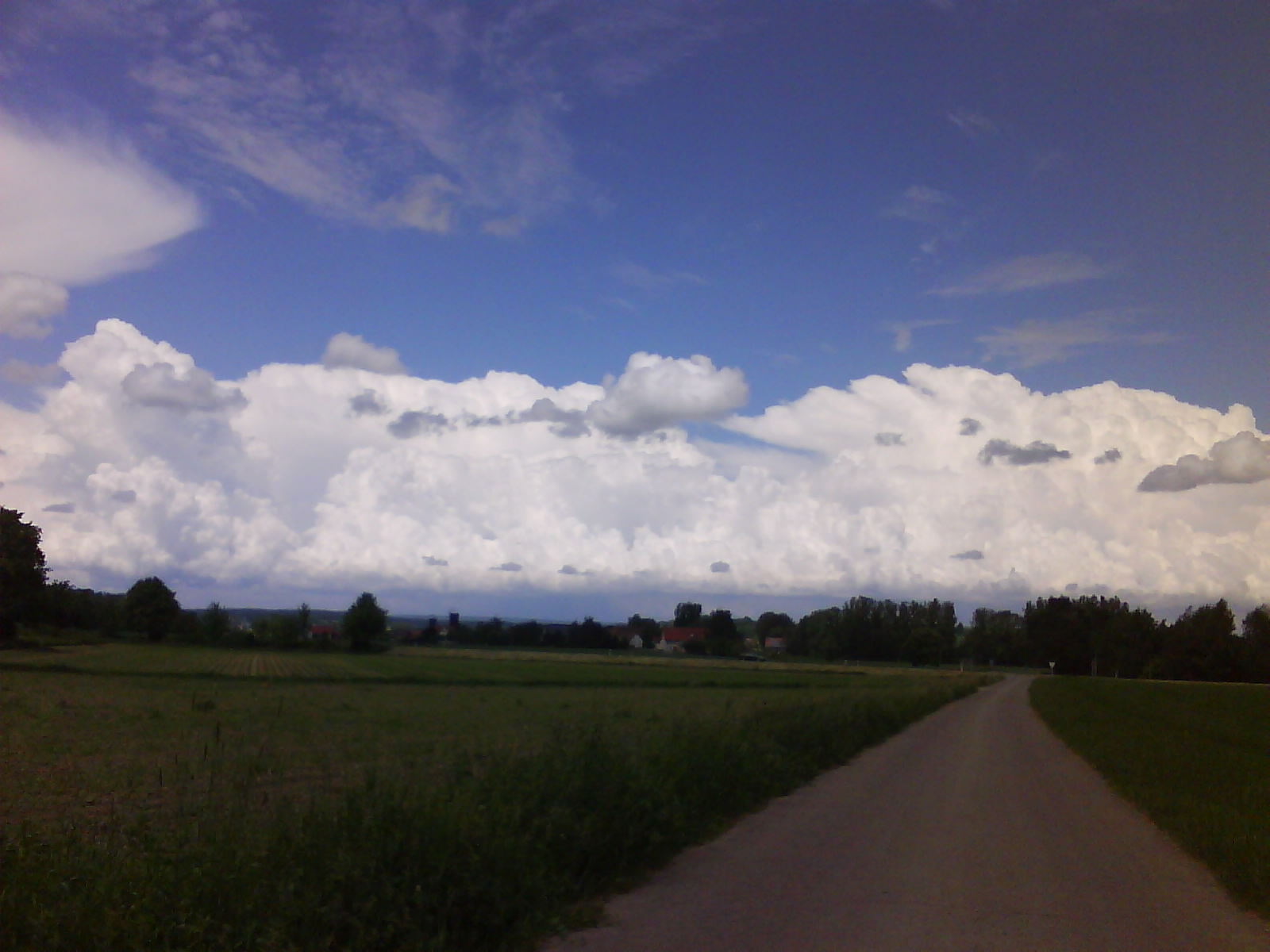 Die Sonne hat es doch noch geschafft, ein bisschen stärker raus zu kommen. Hier geht allerdings ein ganz ordentlicher Wind. Die tiefen wolken ziehen fast von westen nach osten. Da könnte dann also evt wieder ne leichte Scherung da sein.
