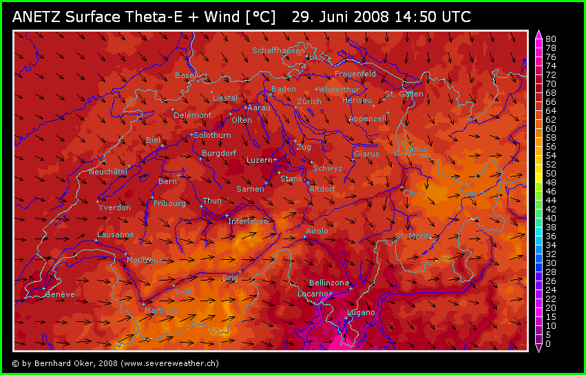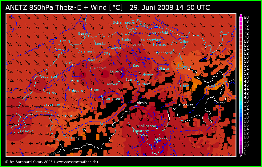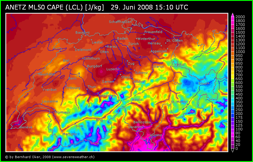 Aktuelle CAPE-Werte und 850er Theta Werte wg. allfälligen kühleren NW-Bodenwinde würden mich jetzt interessieren. Gruss Cyrill