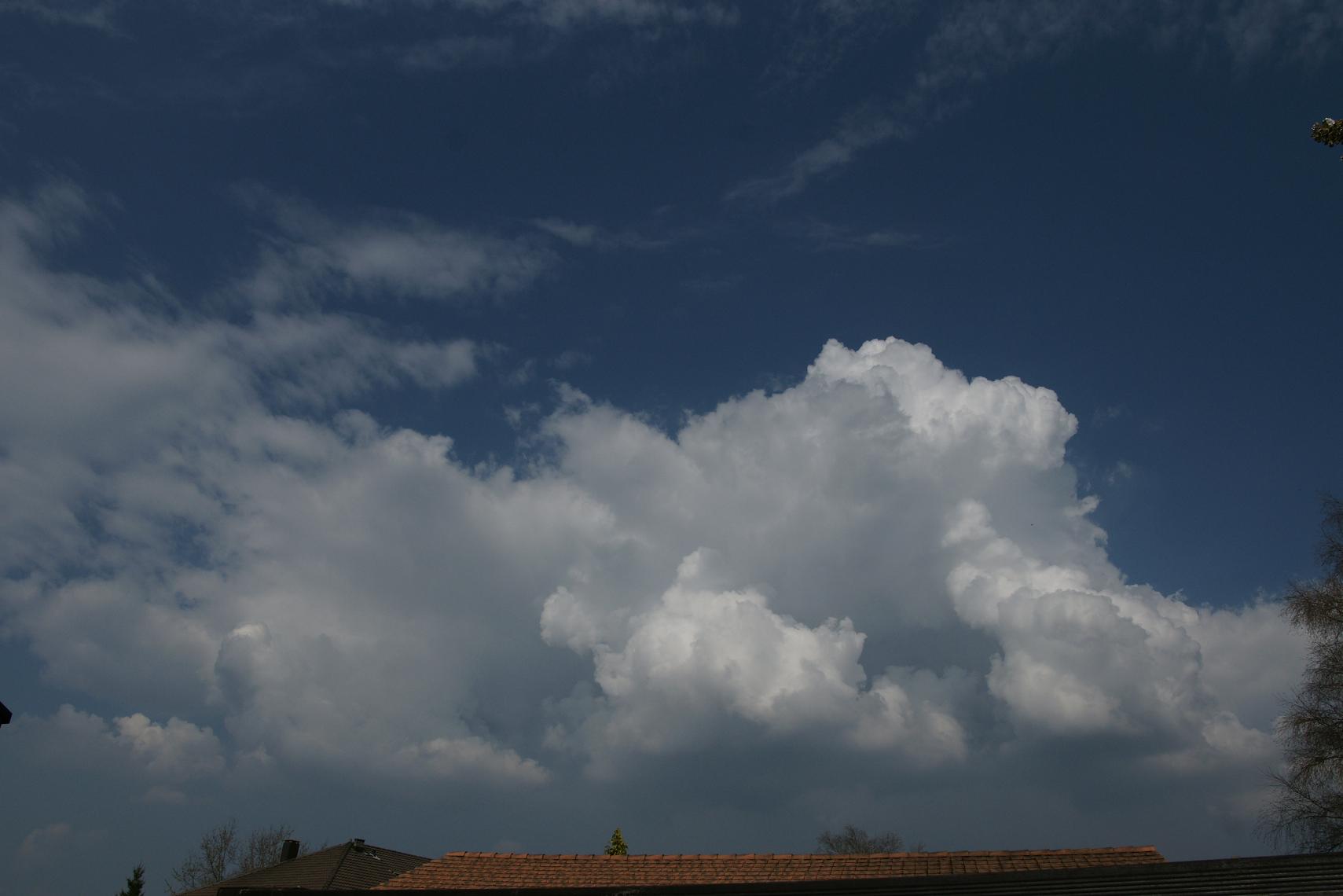 Die hiesigen Zellen kommen nicht so richtig in Gang. Die Türme erreichen zwar rein optisch eine beachtliche Höhe, allerdings werden sie jeweils rasch von der Basis entkoppelt. Da scheinen ungünstige Wind/Feuchtigkeitsverhältnisse in den unteren Schichten zu herrschen.