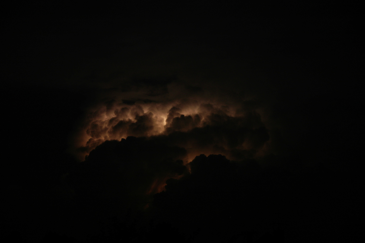 Heute früh kurz nach Mitternacht gab es nördlich des Kaiserstuhls zwei blitzaktive Zellen, die weiter nach Norden zogen. Die südlichere Zelle produzierte fast ausschließlich Wolkenblitze...leider war sie schon zu weit entfernt um noch vernünftige Fotos zu schiessen. Die Blitzshow war trotzdem klasse...hier ein Beispiel, wo ich noch ein bisschen was rausholen konnte: