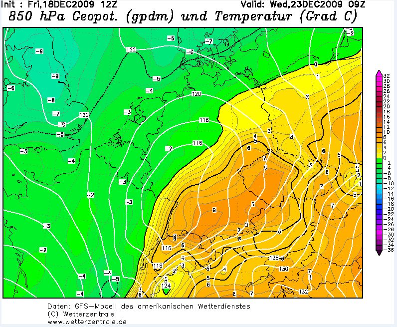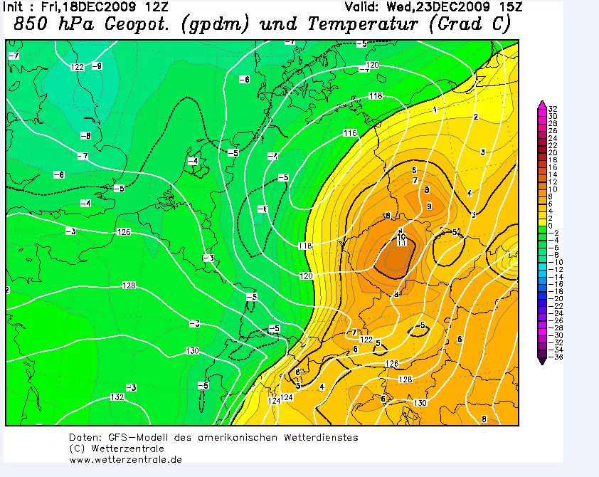- Temperaturanstieg von 27K (850hpa) von -17°C auf +10°C in 4 Tagen