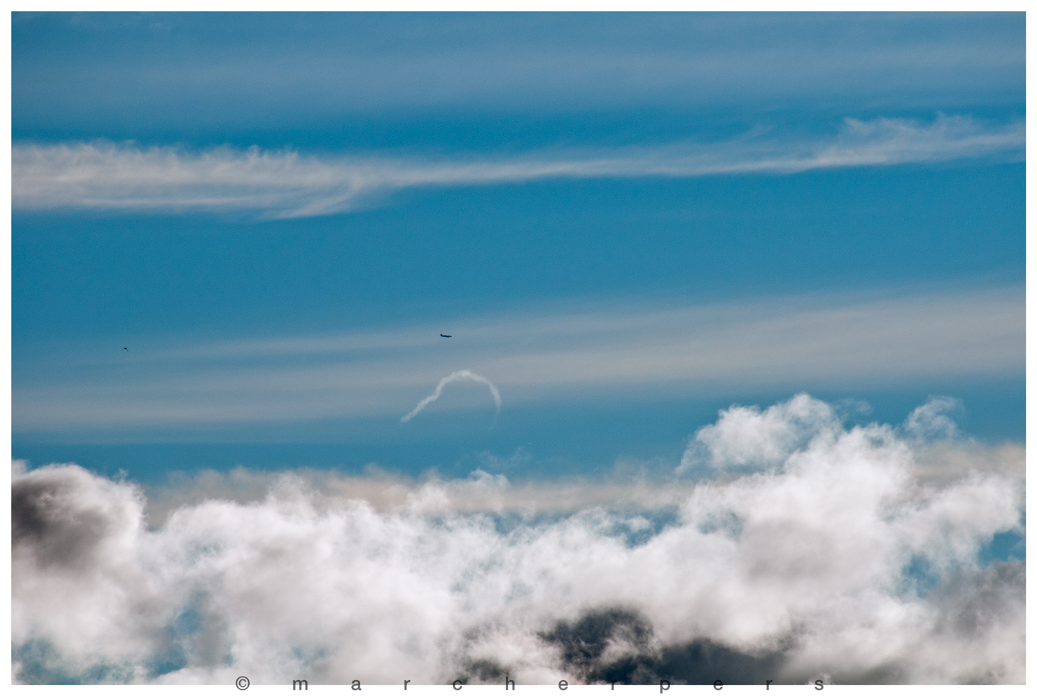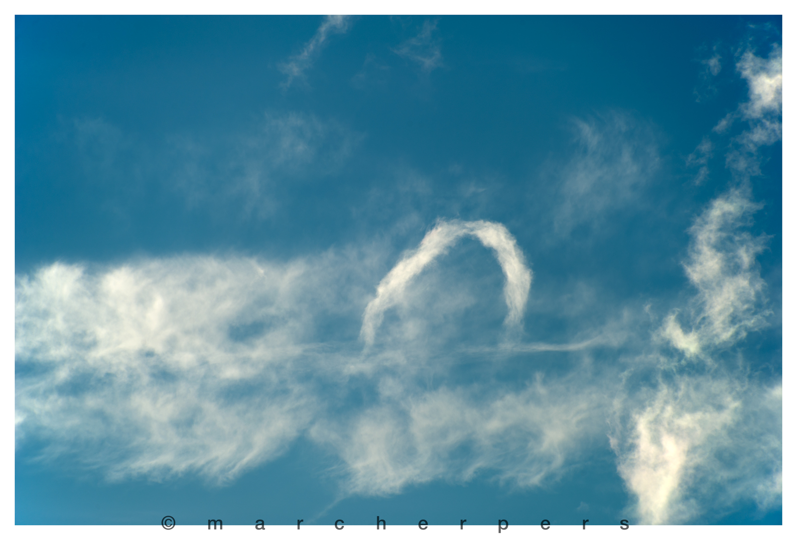 So wie ich es verstanden habe entstehen diese Wolken manchmal in ziemlich abgetrocknete Luft wo frisch erzeugte Stapel (Schicht-)wolken sich rasch wieder auflösen. Gleichzeitig zeigt der Wind sich ziemlich unregelmässig in seiner Richtung und/oder Kraft. Wenn das aber alles gleichzeitig zusammentrifft, kann der Wirbel welche die kleine Stapelwolke erzeugt, ersichtlich gemacht werden. Die Wolke welche sich daraus ergibt löst sich auf, aber erst zuletzt die Teile welche der Position der Wirbel verraten. Für ein kurzer Moment, wie hier auf beide Bilder, zeigt sich dieser Wirbel in der Form einer Wolke der ein Hufeisen ähnlich aussieht.