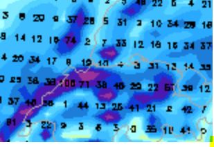 z.B. bei Coamps 0z - 3mm am Bodensee, teils 100mm über dem Jura