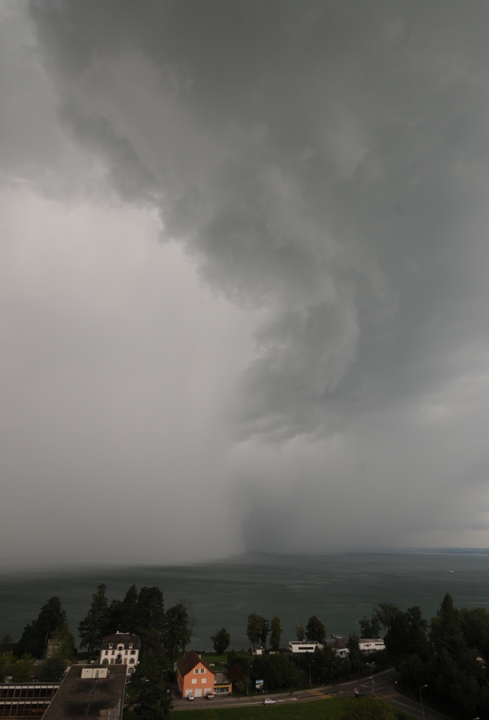 Wieder mal richtig interessante Schauer heute mit grosstropfigem Regen wie aus dem Nichts. Die Schübe sind jeweils nur kurz und so kann man die Regenschübe wunderbar über die Stadt wandern sehen.
