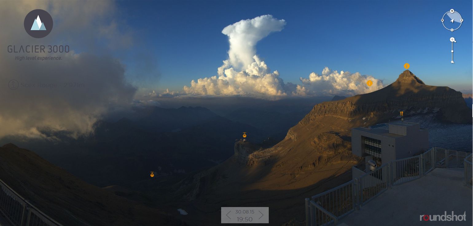 Am nächsten dran war die Webcam auf dem Scex Rouge (Diablarets) um 20 Uhr: